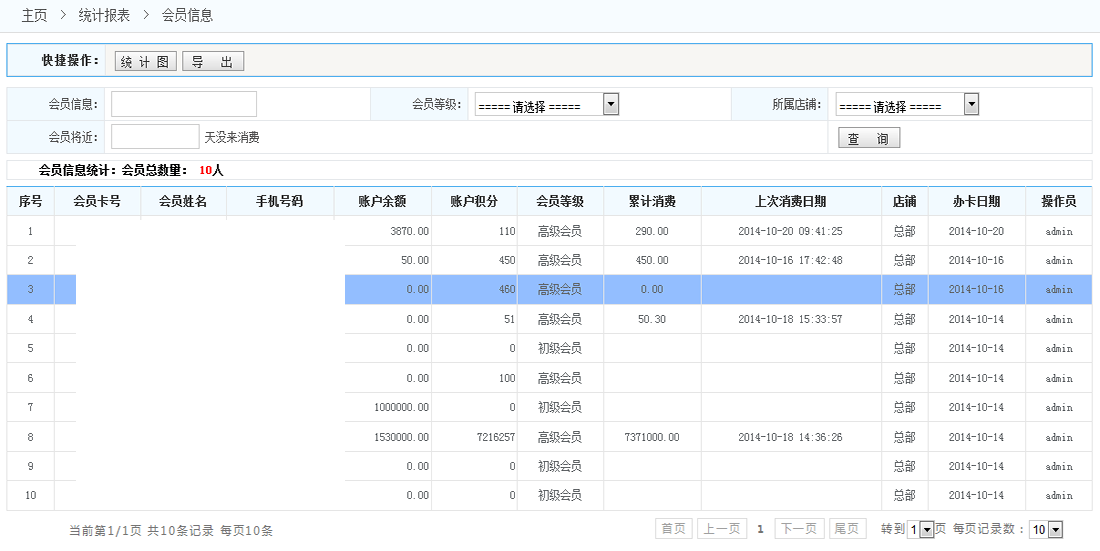 會(huì)員信息統(tǒng)計(jì):查看會(huì)員基本信息