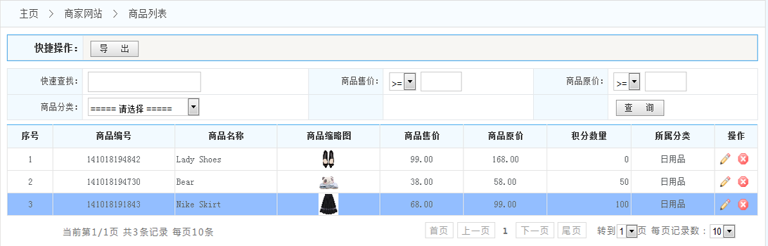 3.列表:在商品列表的操作一欄 可以對該商品進(jìn)行編輯和刪除