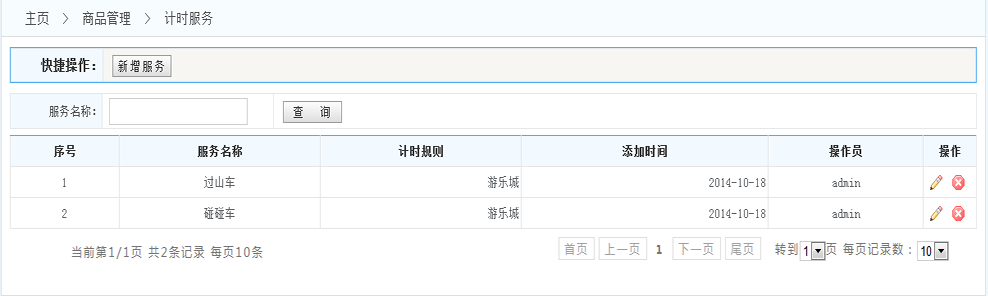 規(guī)則列表:展示系統(tǒng)內(nèi)設(shè)置的所有的服務(wù)項(xiàng)目 (操作一欄 可以對(duì)每條規(guī)則進(jìn)行修改和刪除 )