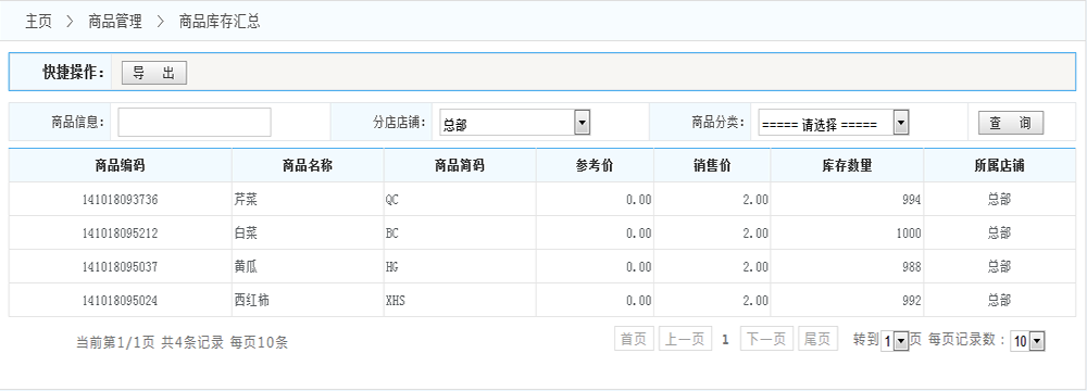 篩選:可以根據(jù)編碼或者簡(jiǎn)碼或者名稱 快速找到某個(gè)商品 也可以根據(jù)店鋪或者商品分類查詢數(shù)據(jù)