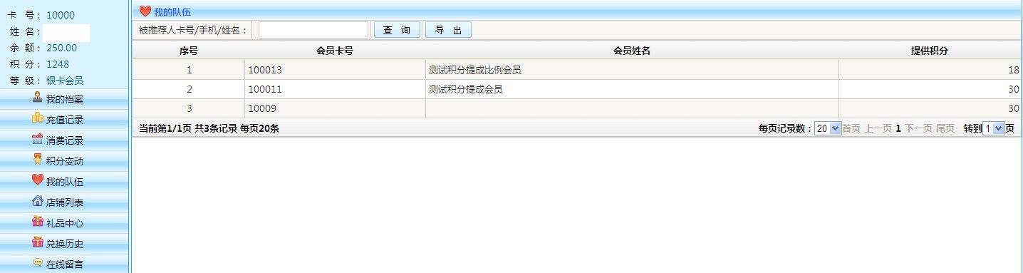 我的隊伍里面的會員,在系統(tǒng)中消費(fèi) 充值等操作時 自己會有積分提成