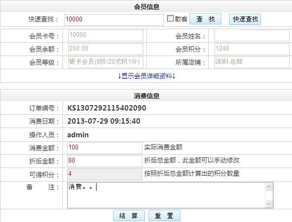 不用選擇產(chǎn)品的一種結(jié)算方式,直接輸入會員的消費金額,就可以完成消費。